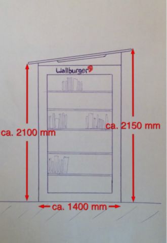 Die Firma Wallburger GmbH wird eine „Bücherbude“ aus Alu-Profilen bauen und kostenfrei zur Verfügung stellen. Auf der Tür wird das Logo „Sponsoring Wallburger GmbH“ angebracht. Der Wert der Bücher-Zelle beträgt ca. 3.500 €. Der Name für die Bücher-Zelle wird mittels einer Befragung der Bürgerschaft gesucht werden. Dieser Name wird dann auf die beiden seitlichen Fensterflächen per Folie aufgebracht. Die Folien sind für unter 50 € bei Gisbert Reinhold zu beschaffen.